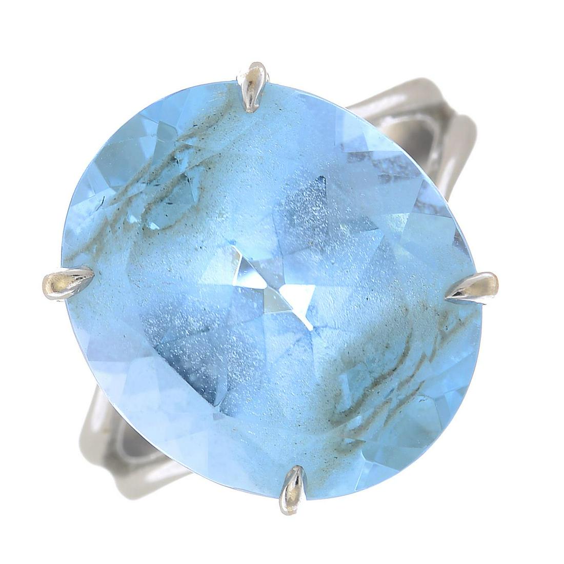A blue topaz single-stone ring. Topaz calculated weight