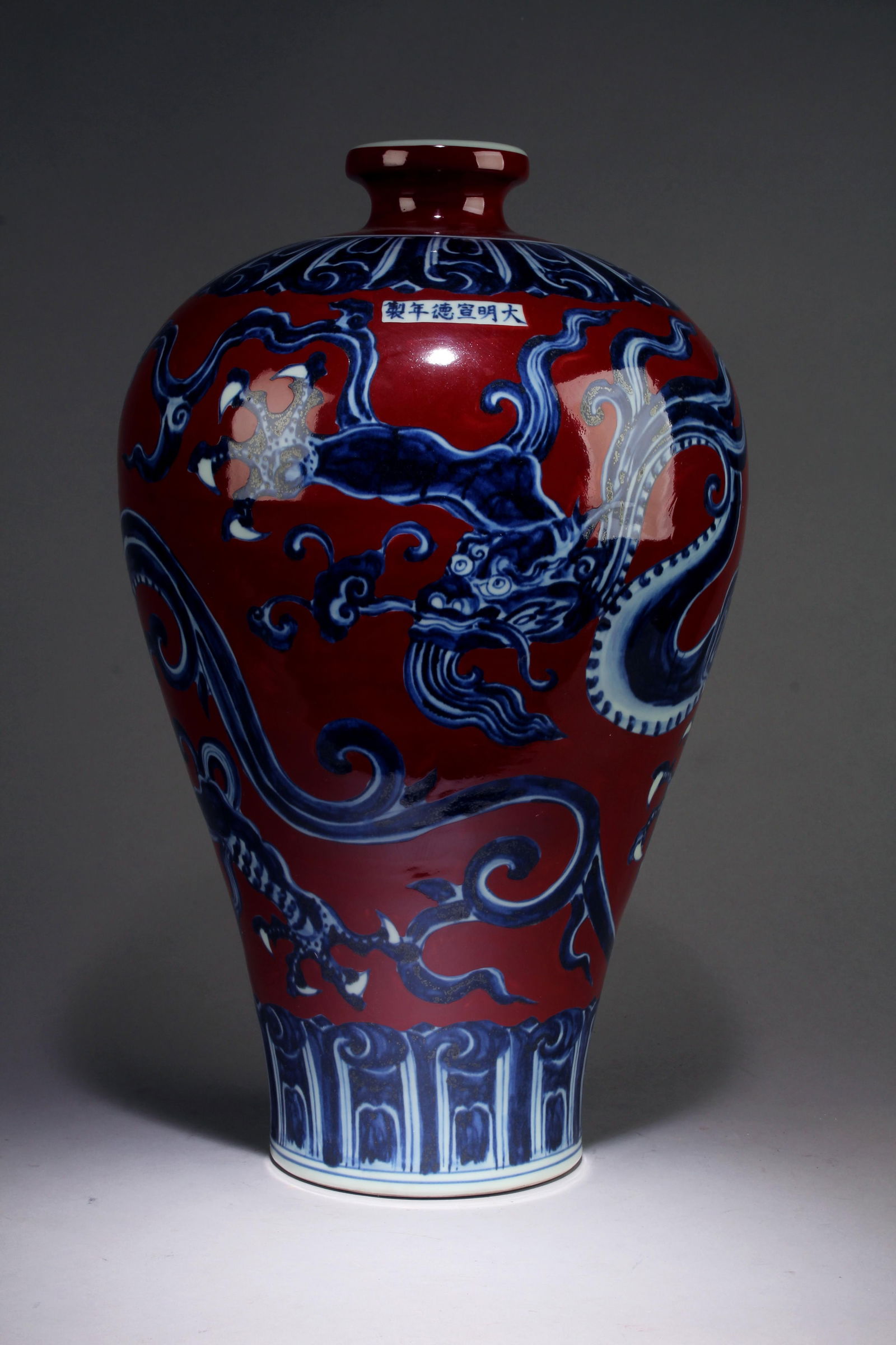 A Blue, White, and Red Dragon Vase