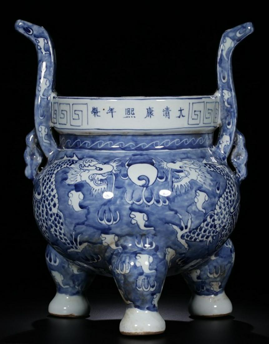 A BLUE&WHITE GLAZE DRAGON PATTERN CENSER