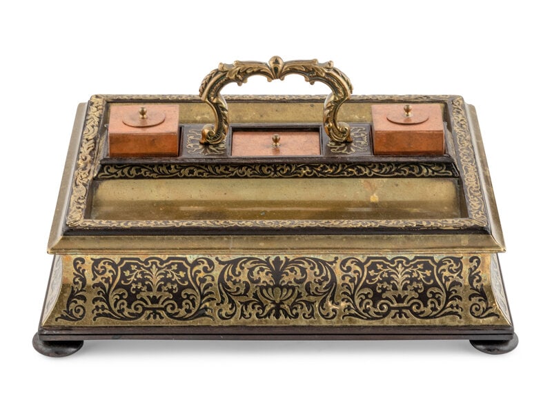 A Napoleon III Boulle Marquetry StandishNapoleon III Style Cabinet5 days LeftLouis XV Style Marquetry Inlaid Brass Bound DeskMARQUETRY BOULLE TEA CADDYFeb 28, 2026Boulle Style Wood Jewelry Box7 days LeftLouis XV-style Marquetry Inlaid Low Chest6 days LeftWooden Riser with Marquetry Inlay WorkMar 05, 2026Continental Brass-Mounted Ebonized Wood InkstandMar 14, 2026Excellent Antique French Marquetry Kingwood Center Piece or StandFeb 28, 2026Mahogany Lift Top Box with Brass Line Inlay, 19th CenturyFeb 28, 2026Outstanding Antique Marquetry inlaid wooden coffin jewelry/trinket chestMar 09, 2026French Empire Gilt Bronze and Burlwood Ink Stand6 days Left19th C. French Boulle Revival Style Decorative Wooden BoxMar 04, 2026French Boulle Style Desk Set with Inkwells and Gilt Bronze MountsMar 07, 2026Italian, Inlaid caseMar 05, 2026MARQUETRY INLAID TEA CADDY9 hrs Left