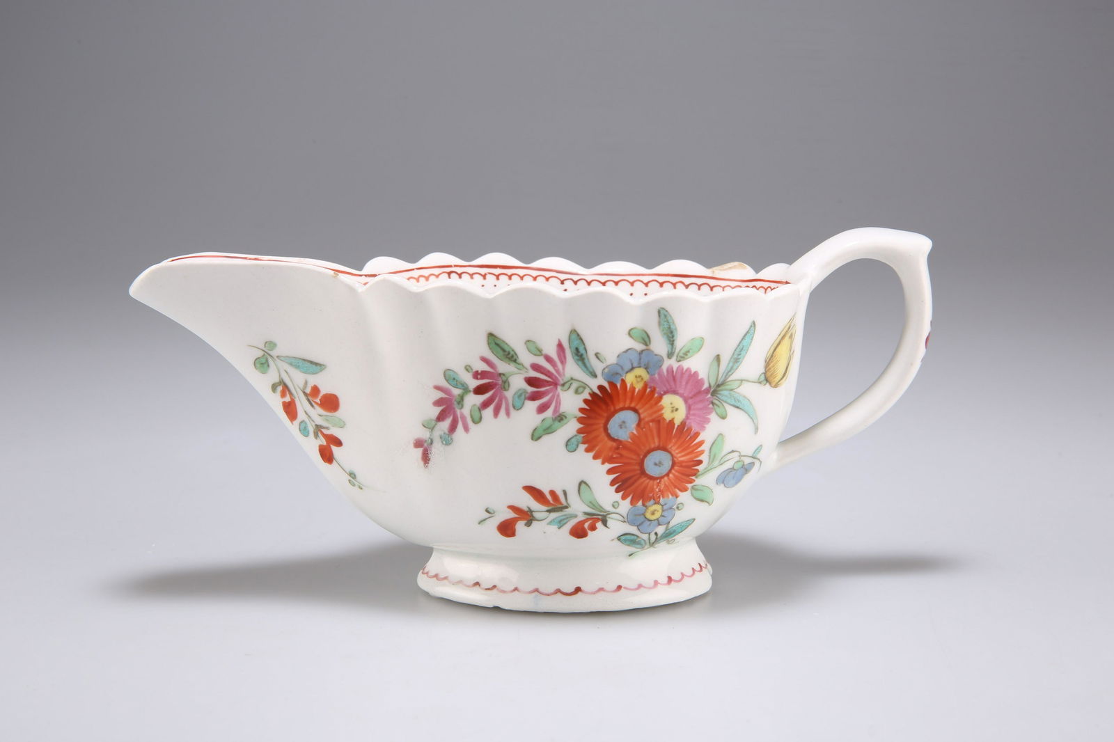 A BOW POLYCHROME SAUCEBOAT, CIRCA 1765-60
