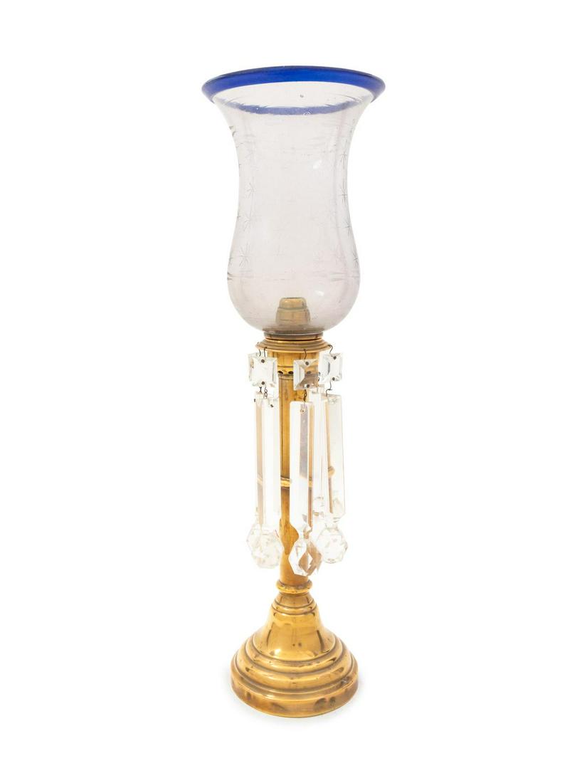 A Brass and Etched Glass Candlestick