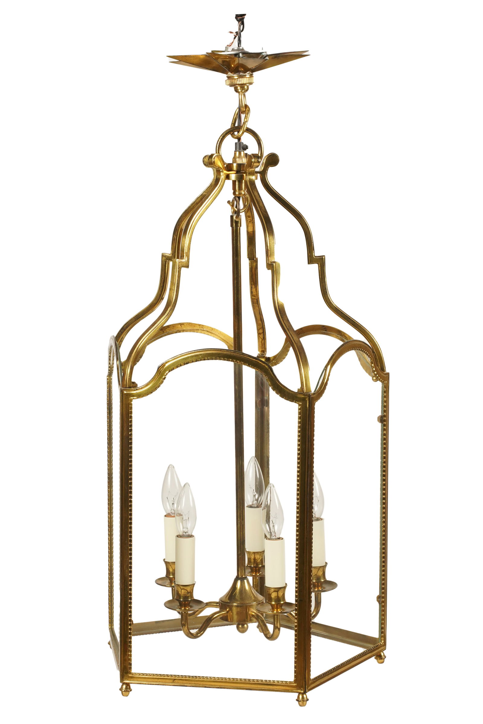 A Brass and Glass Lantern Ceiling Light Fixture