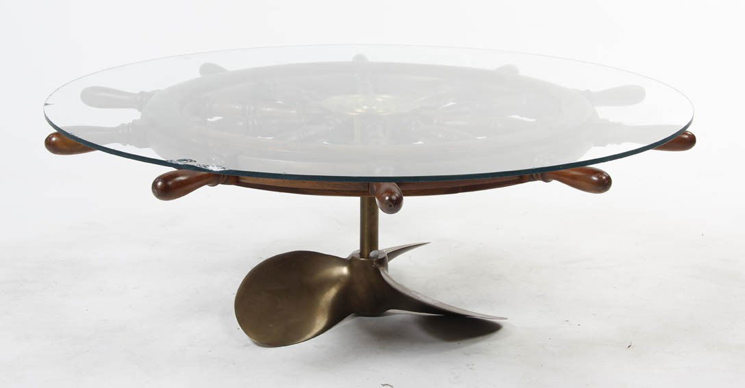 A Brass Ship Wheel Coffee Table, Diameter 51 inch