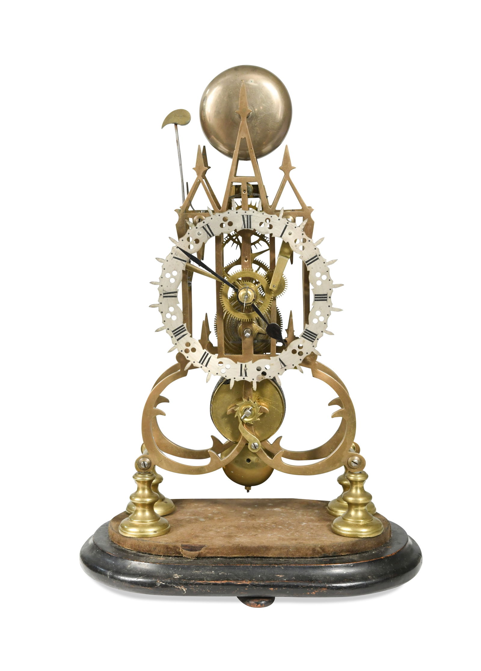 A brass skeleton clock, 19th century,
