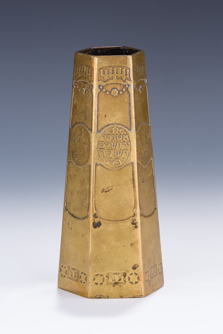 A BRASS VASE BY BEZALEL. Jerusalem, c.1917. Octagonal.