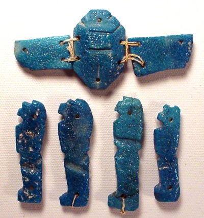 A bright blue faience winged scarab with