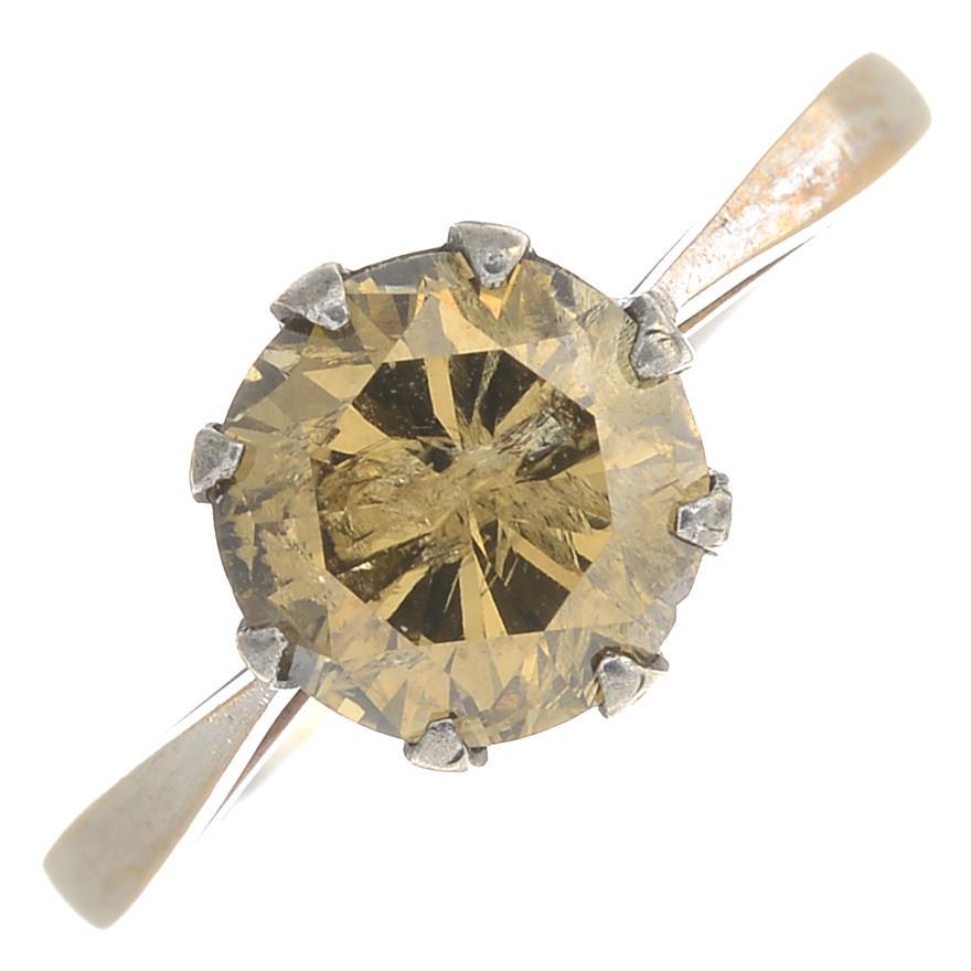 A brilliant-cut 'coloured' diamond single-stone
