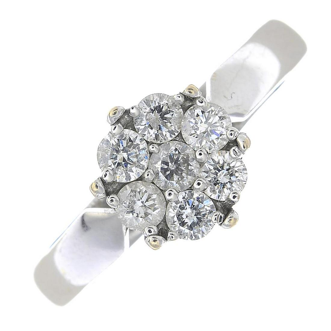 A brilliant-cut diamond floral cluster ring.Total