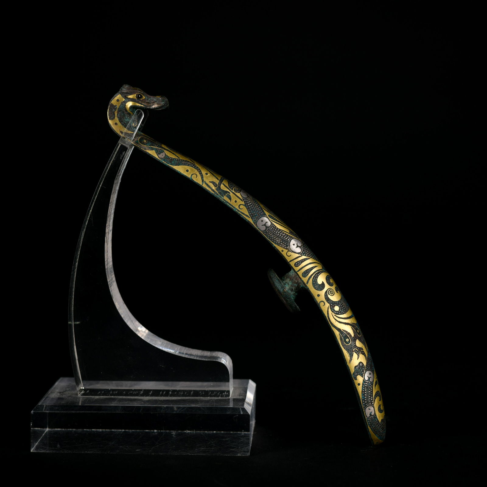 A bronze buckle ware with gold and silver