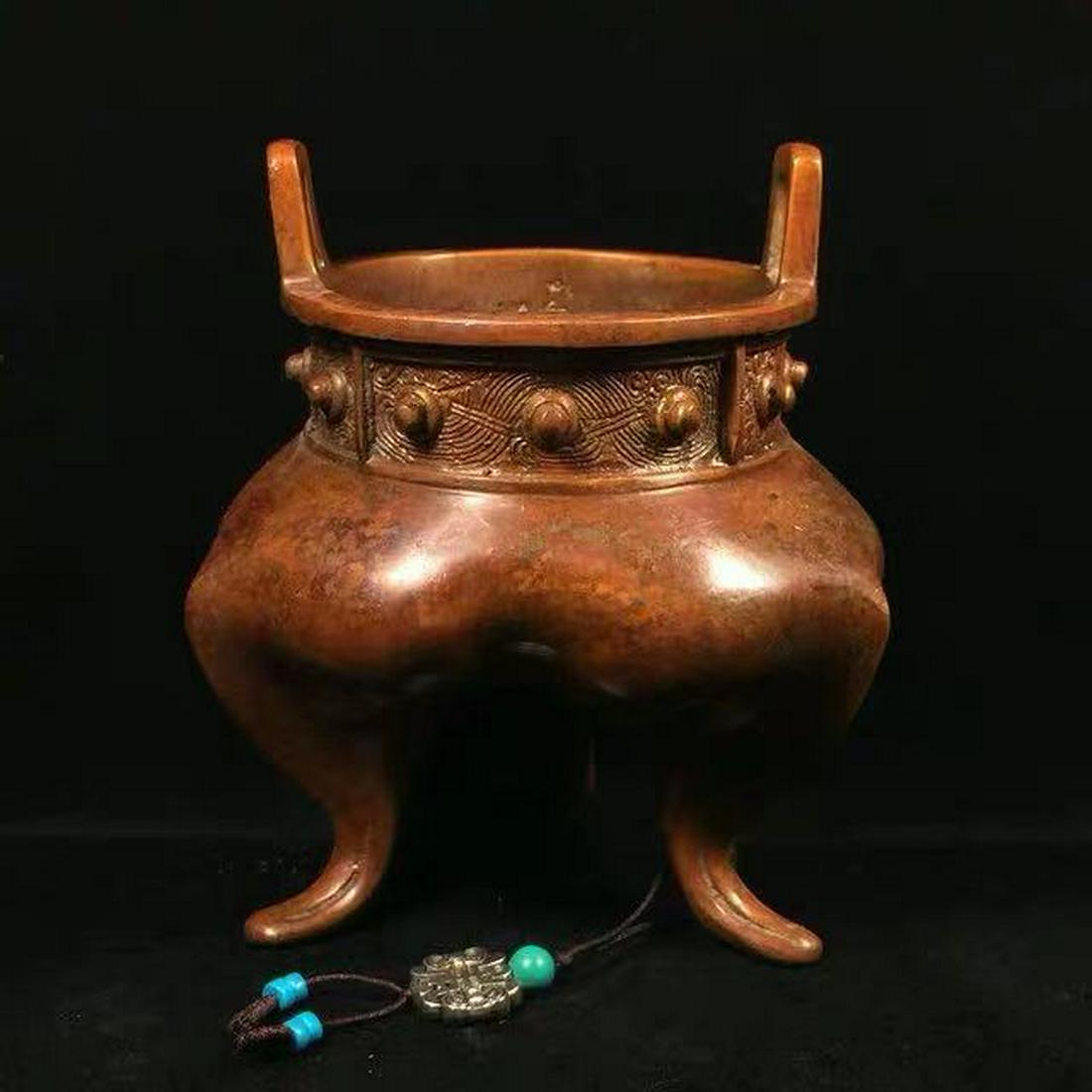 A BRONZE CENSER WITH CARVING