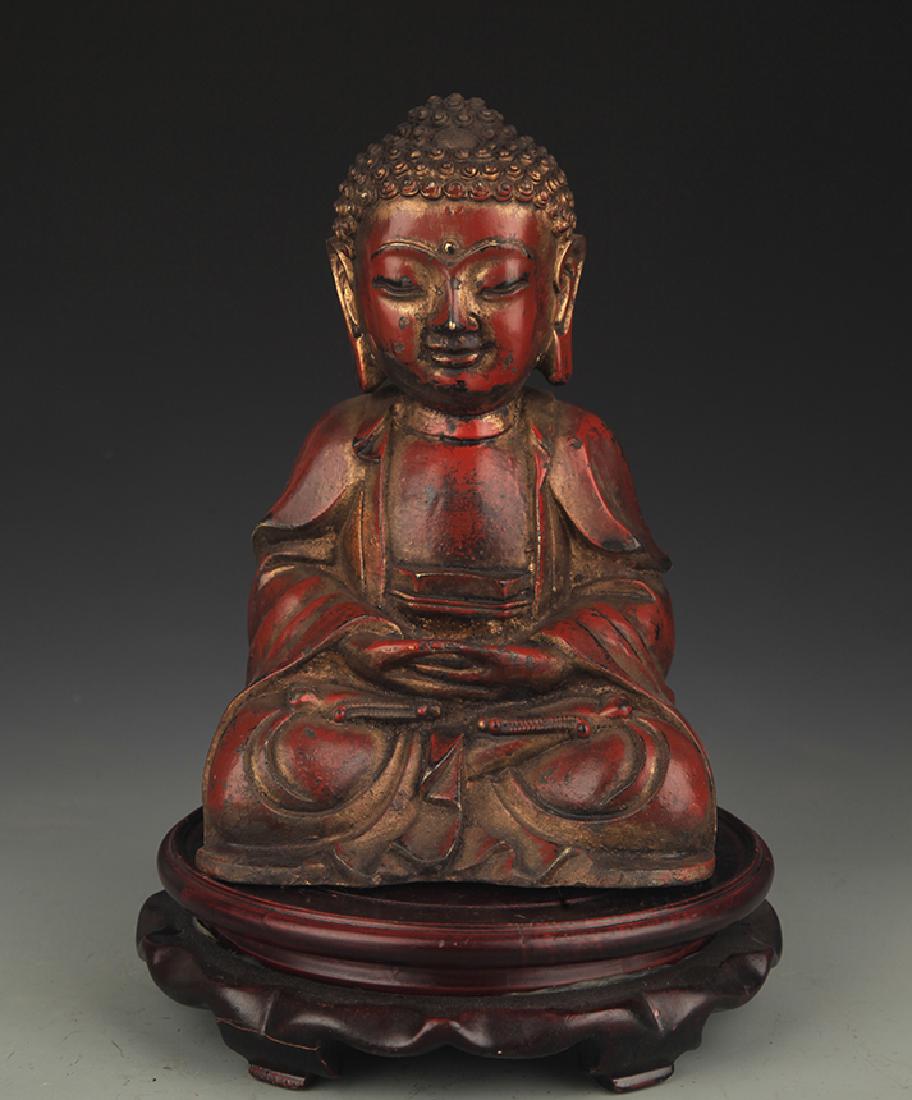 A BRONZE GILT SAKYAMUNI STATUE