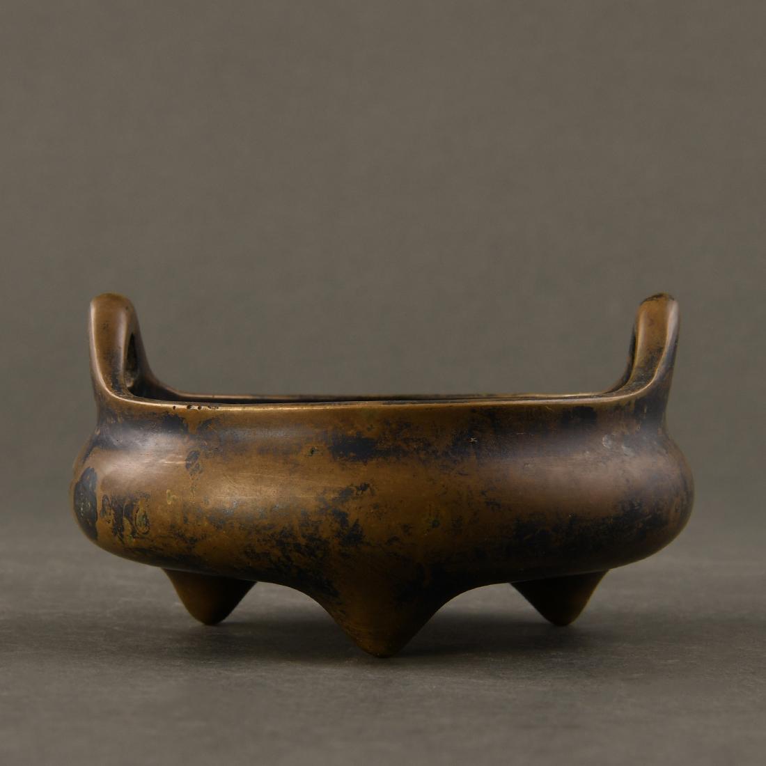 A BRONZE INCENSE BURNER, LIDING