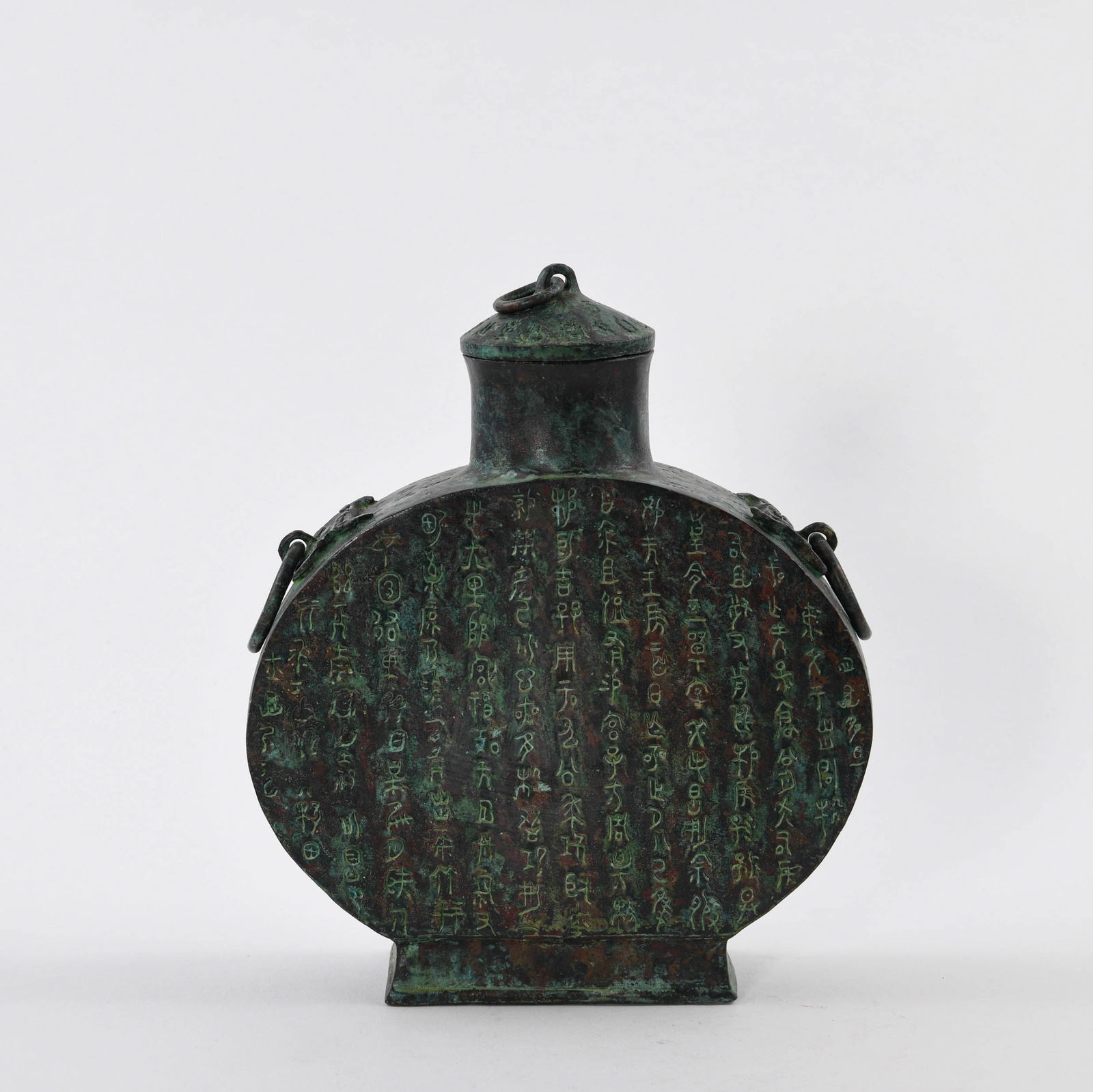 A BRONZE LOOPS MOONFLASK AND COVER
