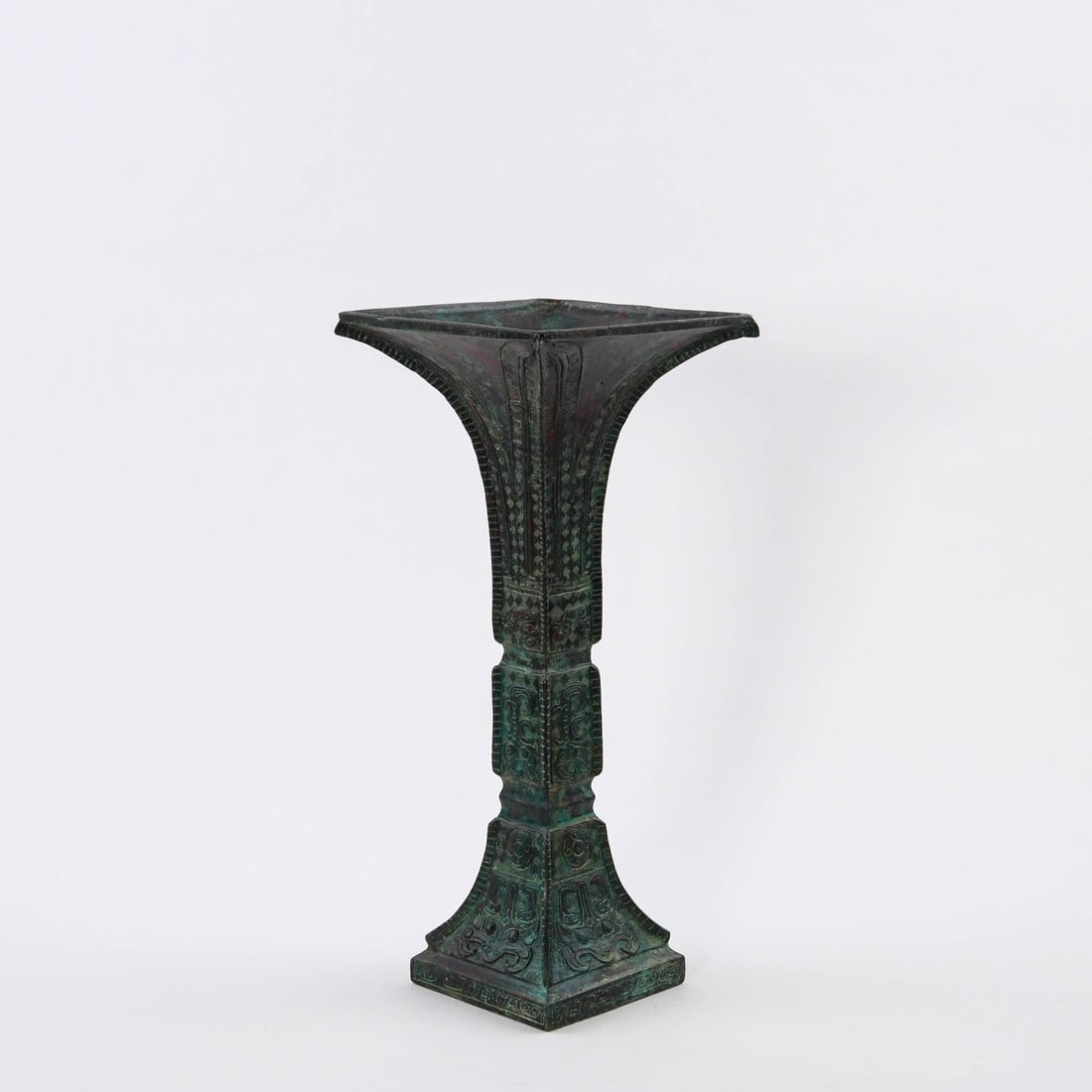 A BRONZE SQUARE VASE, GU