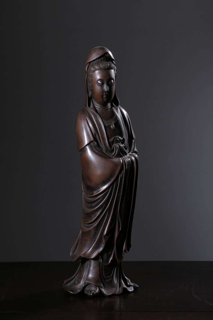 A Bronze Standing Guanyin Statue