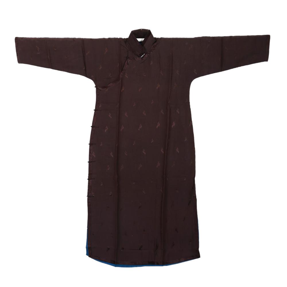 A BROWN-GROUND EMBROIDERED LADY'S ROBE