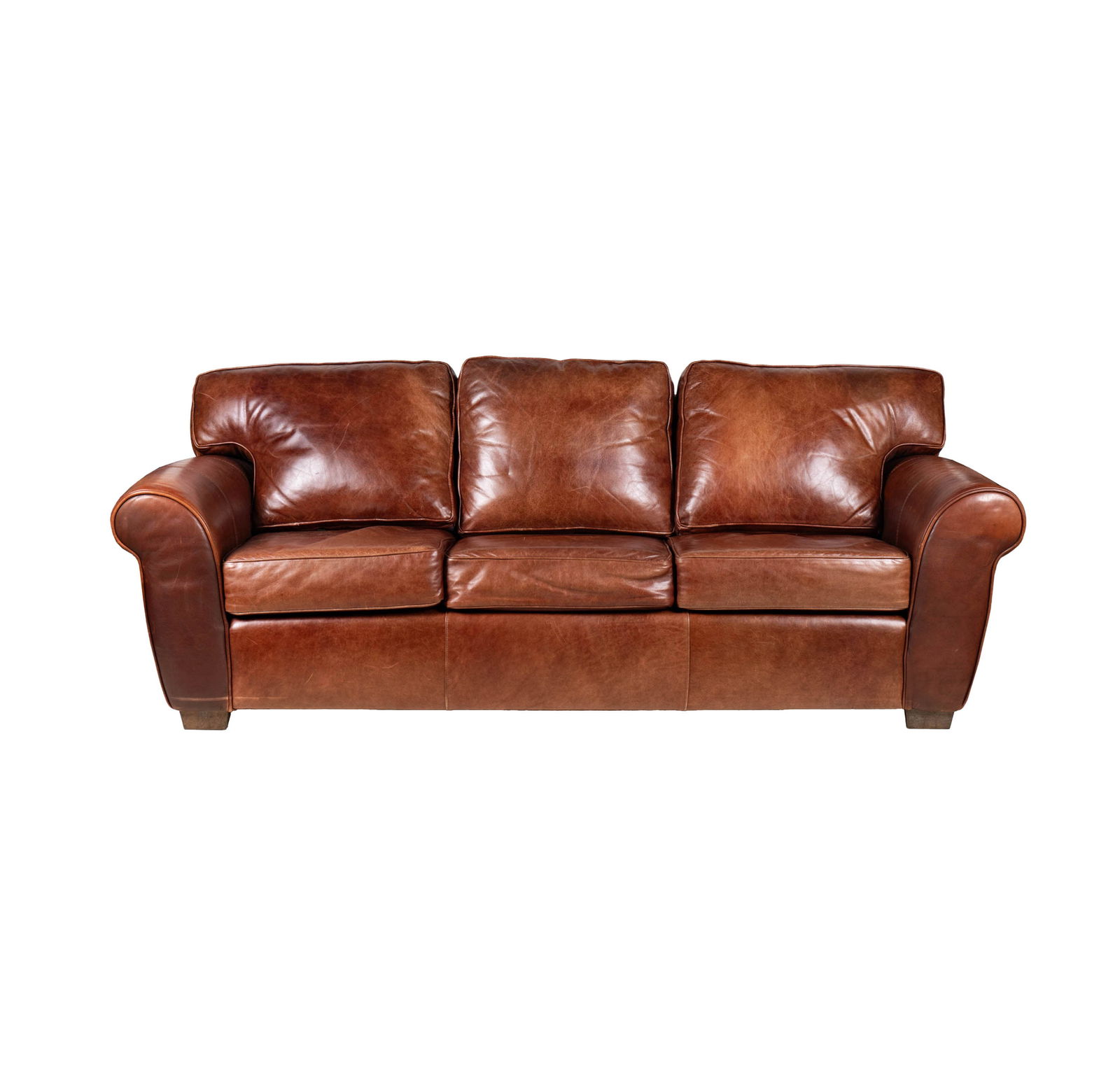 A Brown Leather Three-Seat Sofa