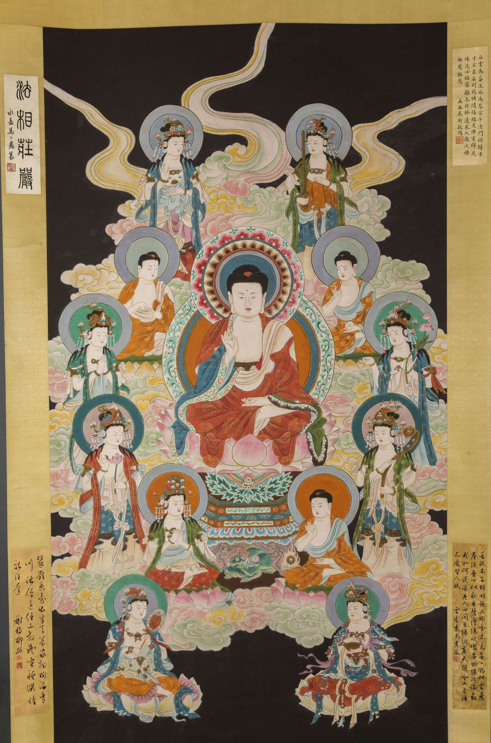 A BUDDHA PAINTING ON SILK.