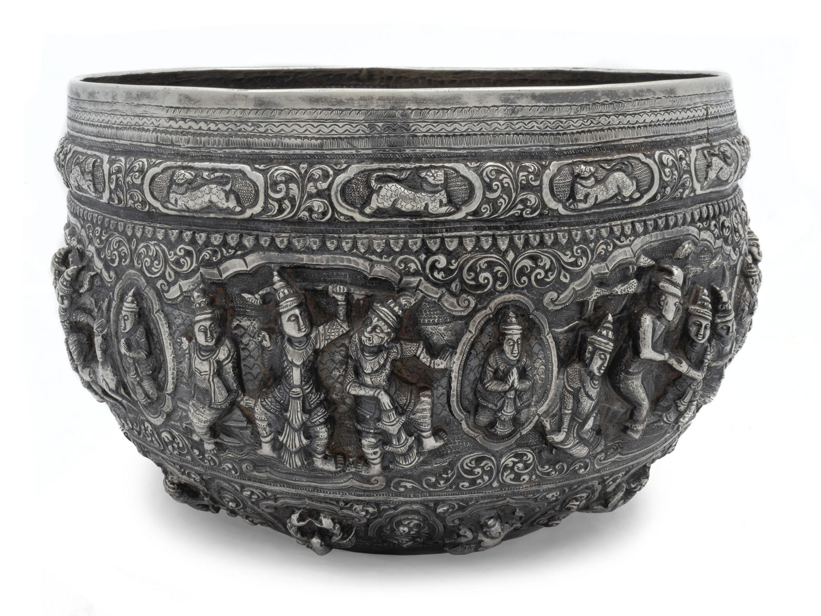 A Burmese Silver Repousse Basin Height 8 1/2 x diameter