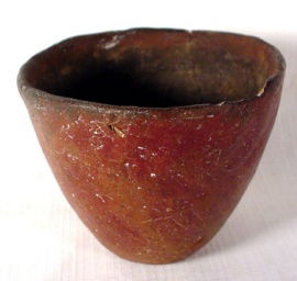 A burnished red-ware jar. Flat based wit