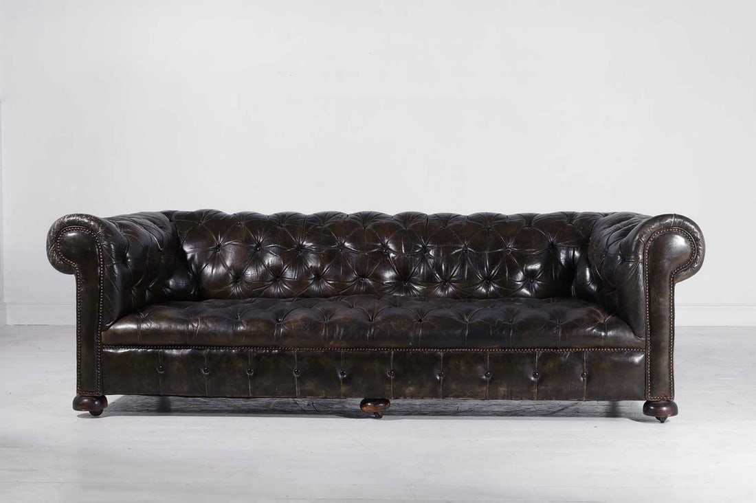 Georgian, Chesterfield Sofa, Tufted, Red Distressed Leather, Bun Feet, 2000sAntique Chesterfield Style Carved Oak Tufted Chaise LoungeA brass studded tufted tan leather Chesterfield sofa, 20th century5 days LeftBritish Red Leather Chesterfield SofaMar 02, 2026Hancock & Moore Leather Chesterfield Sofa7 days LeftCHESTERFIELD STYLE SOFAMar 06, 2026STYLE OF DE SEDE SWISS LEATHER SOFA C. 1970S4 days LeftSTYLE OF DE SEDE SWISS LEATHER LOVESEAT C. 1970S4 days LeftA TAILORED EVEN ARM LEATHER SOFA HAVING BUTTON BACK UPHOLSTERY AND TWO BOLSTER CUSHIONS.6 days LeftHandsome Club Style Leather Sofa or SetteeFeb 28, 2026OxbloodTufted Leather Chesterfield Sofa, 3-Seater21 hrs LeftLeather Sofa and Mohair Velvet Cushions, Manner of Frits Henningsen21 hrs LeftBrown Leather SofaMar 01, 2026Oxblood Tufted Leather Chesterfield Loveseat, 2-Seater21 hrs LeftThomasville Tufted Leather SofaMar 01, 2026Curved Chesterfield tufted brown leather kidney bean couch / sofa 35"H x 89"W20 hrs Left