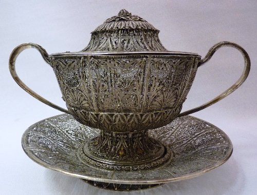 A C18th/C19th filigree silver Ottoman twin handled bask