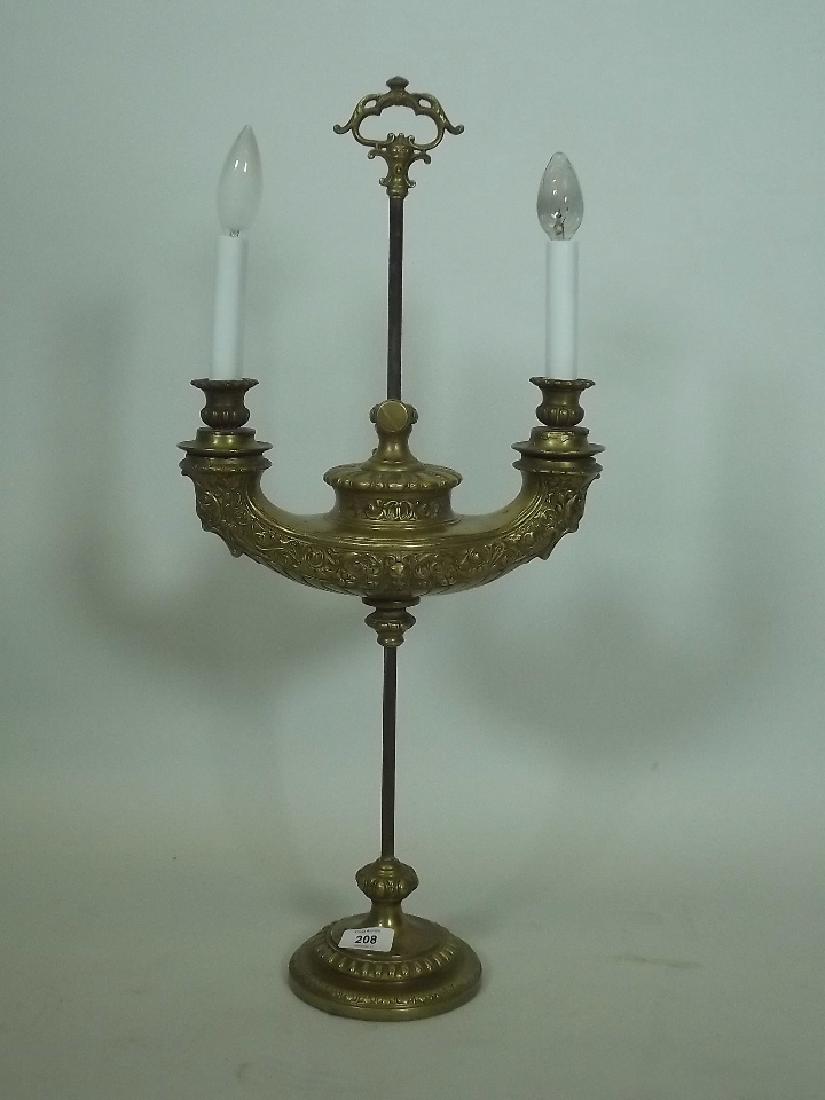 A C19th Adjustable Brass Twin Branch Oil Lamp With