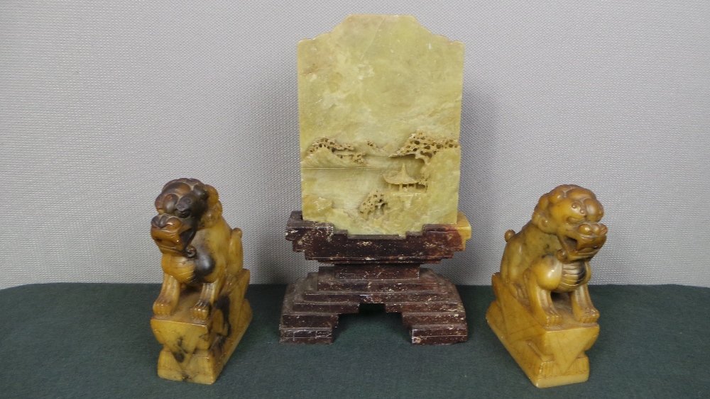 CHINESE CARVED WOOD STATUES- LOT OF (2)Feb 24, 2026Chinese Hetian Jade Hand Carved Beast StatueOld Chinese Shoushan Stone Hand Carved Beast Statue w BoxAntique Chinese Carved Wood SculptureChinese Hetian Jade Carved Figure StatueA Fine Qing Dynasty Jade Table Screen Carved with Six-Armed GuanyinFeb 22, 2026Two Chinese Jade Table Screens on Carved Wood StandsFeb 22, 2026Chinese Carved Jade PlaqueFeb 22, 2026PAIR ANTIQUE CHINESE JADE FOO DOGS.Feb 25, 2026Pair of Antique Chinese Carved Bone Lions With Wood BaseFeb 28, 2026An Exquisite Tianhuang Stone Auspicious Beast Seal OrnamentMar 13, 2026FIVE CHINESE CARVED WOODEN DISPLAY STANDS.7 days LeftChinese Carved Shoushan Stone Buddha And Monks Sculptures21 hrs LeftChinese antique jade table screen with ornate wooden baseMar 02, 2026An Exquisite Tianhuang Stone Landscape and Figure Pattern Seal OrnamentMar 13, 2026An Exquisite Tianhuang Stone Auspicious Beast Seal OrnamentMar 18, 2026