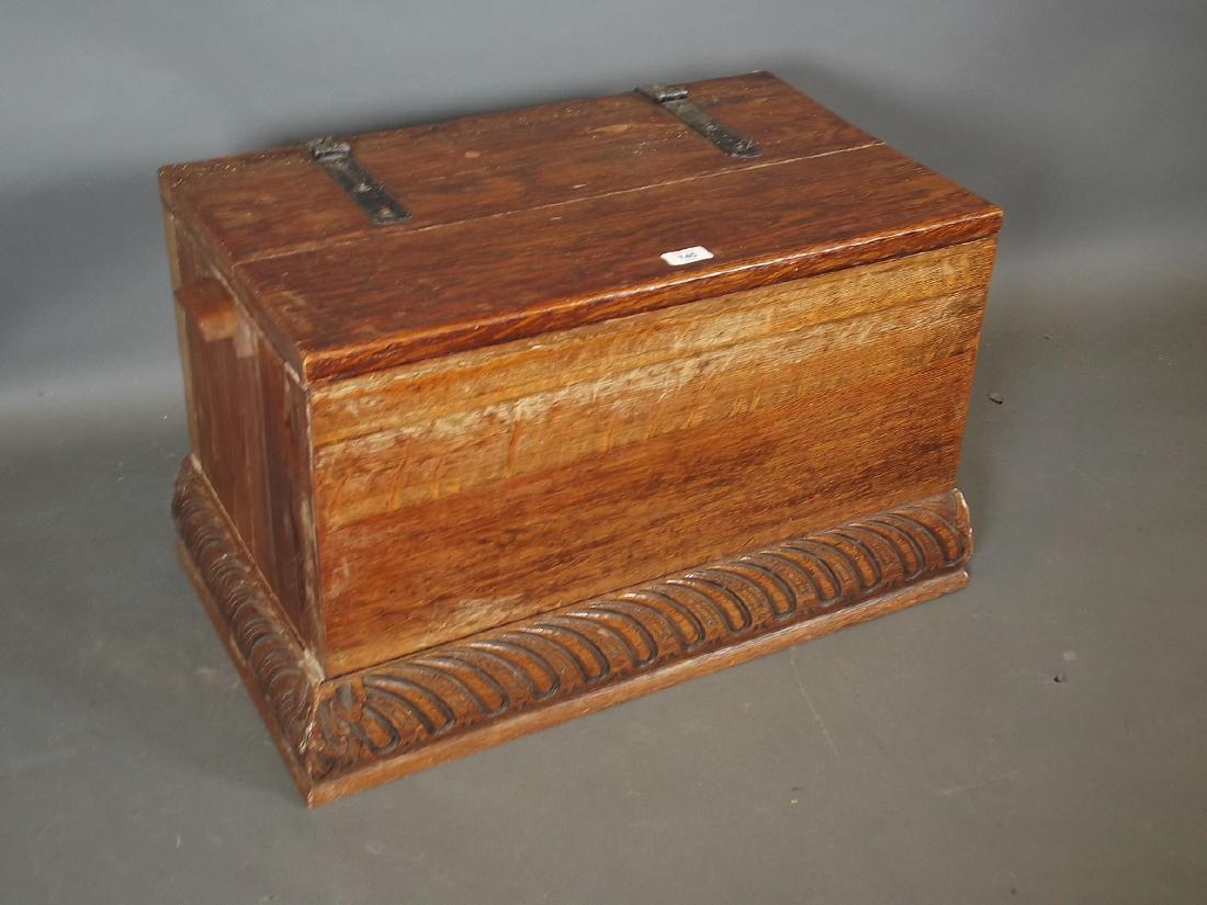 A C19th oak and pine silver chest with carved plinth,