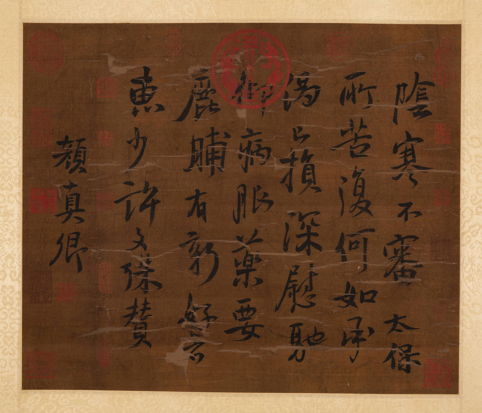 A CALLIGRAPHY ON SILK, BY YAN ZHENQING.颜真卿