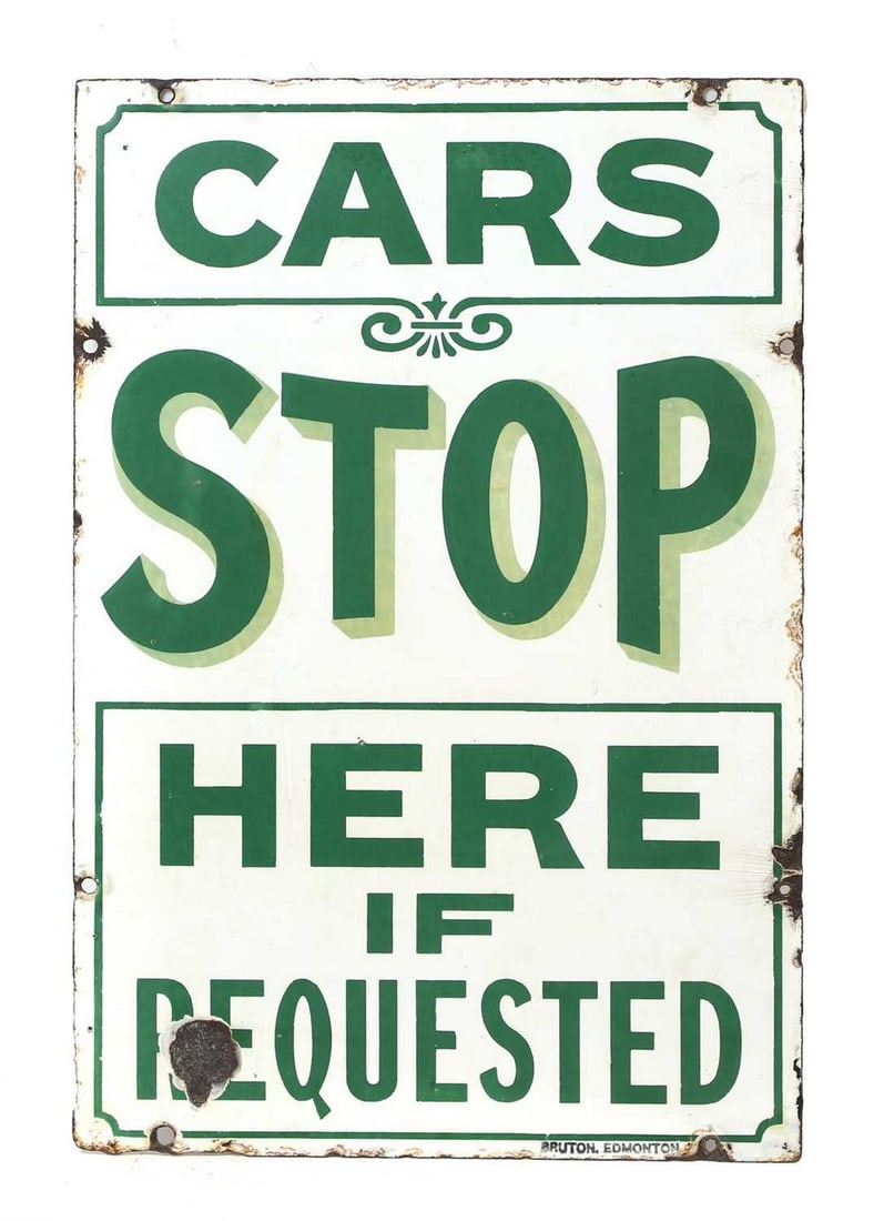 Flats Fixed and New And Used Tires Vacuform Service Station SignsMar 20, 2026Stop Tank Car Connected Railroad Single-Sided Porcelain SignMar 14, 2026Trolley Double Sided Porcelain Flange Stop SignMar 21, 20262 Early 20th Century Pittsburgh Streetcar SignsMar 04, 20262 Early 20th Century Pittsburgh Streetcar SignsMar 04, 2026Please Drive To Last Pump Single-Sided Porcelain SignMar 14, 2026No Parking Motor Banking Lane Sign, Green Lettering on White Background, 19h x 25w x 2d inches1915 Hupmobile Service DSP Advertising SignMar 21, 2026Stop Sign, 25h x 25w x 2d inches, Red & White Octagon, Reflective Front, few scratchesNo Smoking Stop Your Motor SSP SignMar 20, 2026Stop Sign, 31h x 31w x 2d inches, Red & White Octagon, Reflective Front, few scratchesRare Sterling Motor Oil Double Sided Porcelain Tombstone SignMar 21, 2026Conoco New NTH Motor Oil Double-Sided Metal SignMar 14, 2026THE OHIO OIL CO. "NO SMOKING" EMBOSSED TIN SIGN3 hrs LeftBlackstone Cigar Single Sided Porcelain SignMar 21, 2026Early Sinclair Gasoline Emb. SST SignMar 21, 2026