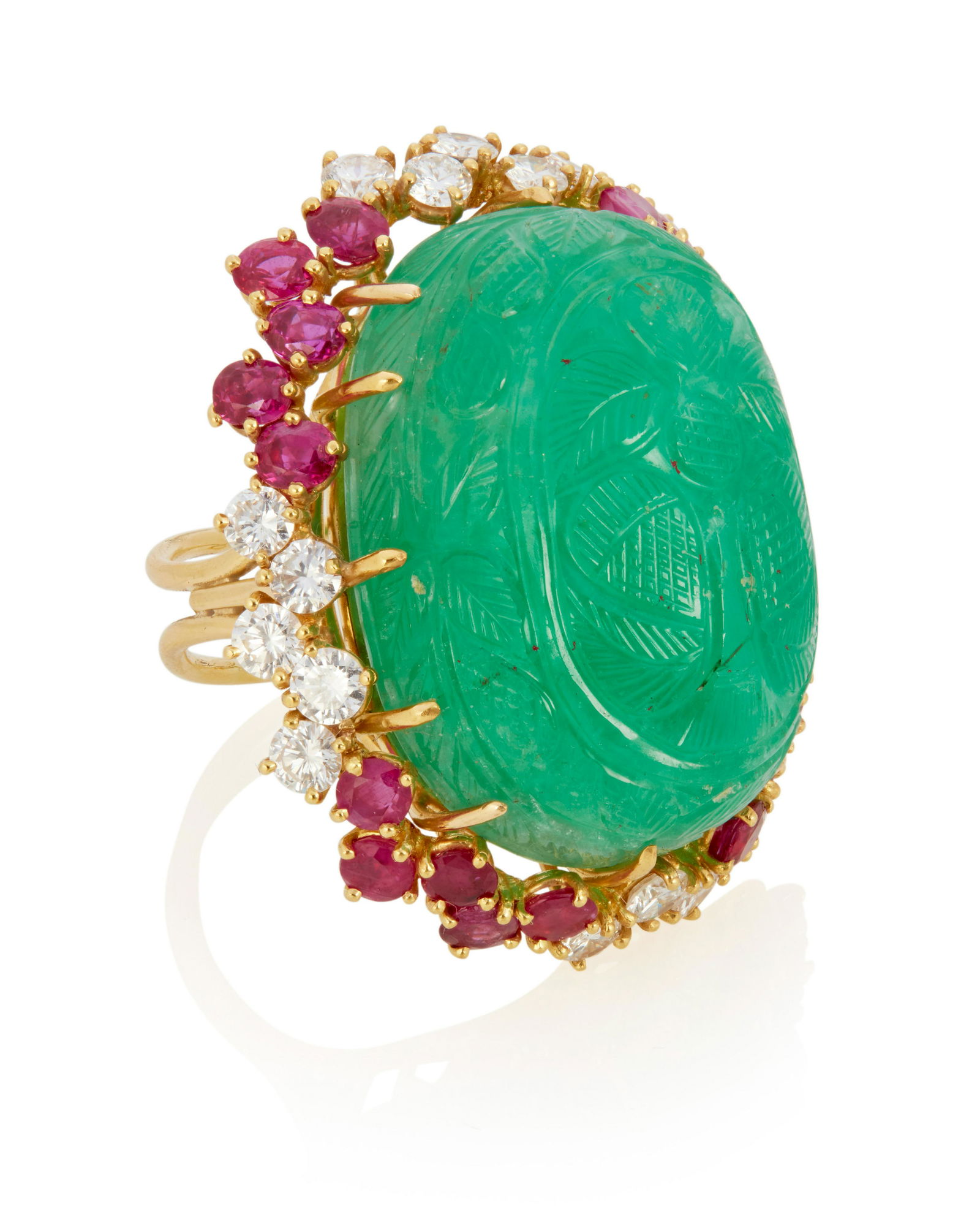 Vintage Carved Green Emerald Diamond Halo Cocktail Ring 14K Yellow Gold 8.47 GrChairish Auctions4.5(10.3k)$2,200