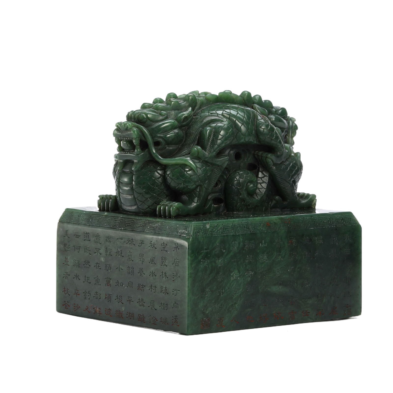 Chinese Green Jade Recumbent Foo Dog FigureApr 01, 2026Hotan jade seal of Emperor Wenxuan of Northern Qi, Gao Yang7 days LeftVintage Tianhuang ShoushanStone Hand-Carved Divine Beast Seal w Fortune DragonMar 22, 2026A CARVED SPINACH GREEN JADE DRAGON SEALMar 22, 2026AN IMPERIAL CARVED SPINACH GREEN JADE DRAGON SEALMar 22, 2026Collection of Turquoise Emperor Dragon and Phoenix [Seven Seal Seals] Set3 days LeftA Exquisite Hetian Jade Dragon SealMar 30, 2026A HIGH-ANTIQUITY JADE SEAL WITH CHILONG (HORNED DRAGON) KNOPMar 28, 2026HETIAN JADE SEAL OF THE HAN DYNASTY4 days LeftShoushan Stone Dragon Seal5 days LeftQING DYNASTY, QIANLONG HETIAN JADE SEAL4 days LeftHAN DYNASTY, A HETIAN JADE SQUARE SEAL WITH MYTHICAL BEAST KNOP2 days LeftAN IMPERIAL HETIAN JASPER SEAL WITH DRAGON KNOP AND INSCRIBED IMPERIAL POEMS, MARK AND PERIOD OF2 days LeftLg Chinese Red Shoushan Soapstone Qilin Seal2 days LeftA beautiful Hetian ancient jade war Han ancient beast sealApr 10, 2026An Exquisite White Jade 'Dragon' Seal With Poem InscriptionsMar 27, 2026
