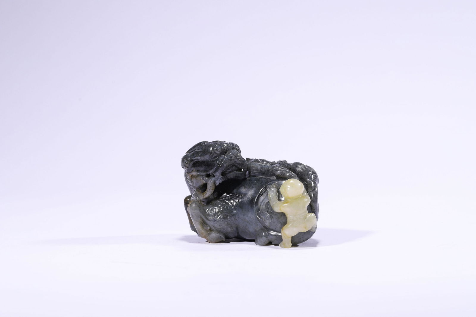 A HETIAN JADE CARVED KUI-BULL FIGURE