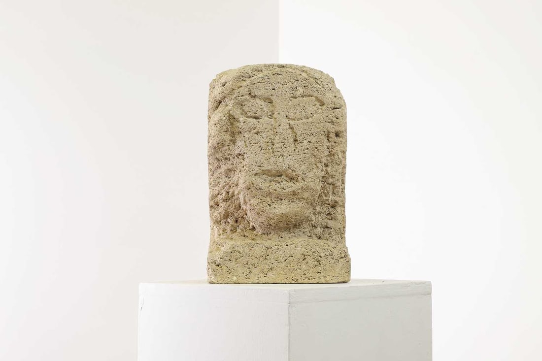 A carved limestone head,