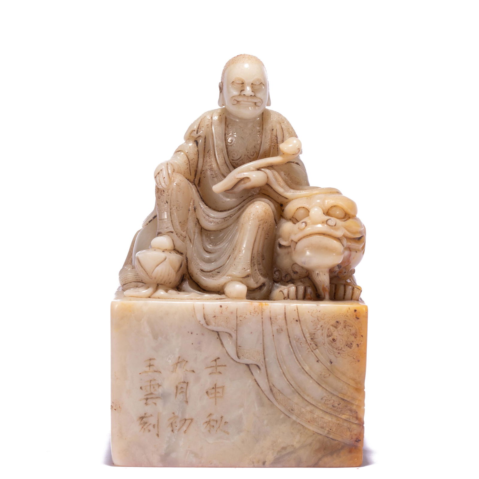 A SHOUSHAN STONE CARVED SEAL WITH LION PLAYING BROCADE BALL FINIALTop Notch Collections4.5(56)$1,0005 days Left