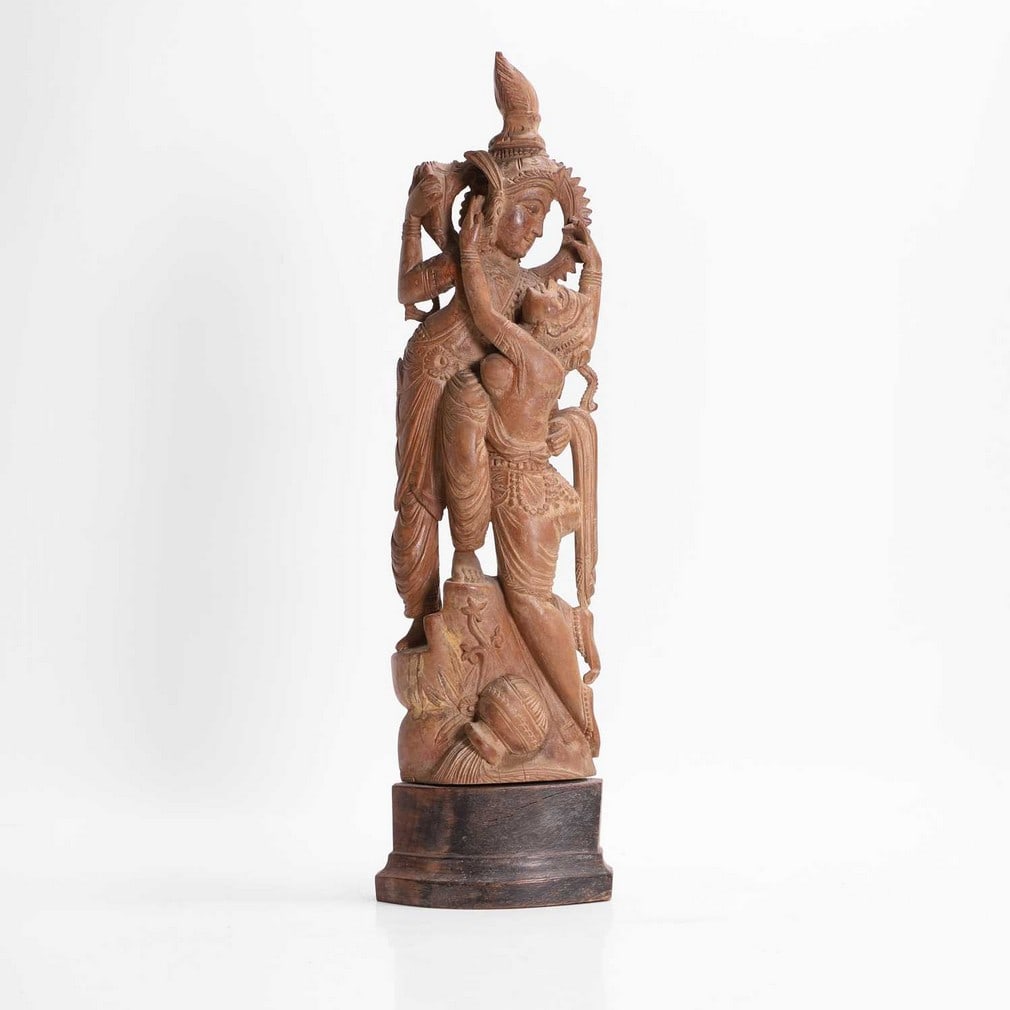 A carved teak figural group,