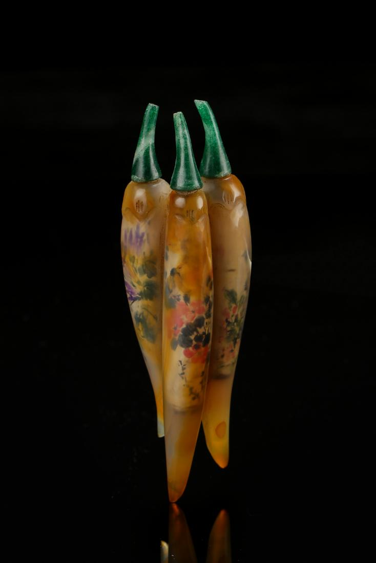 A carved triple Chilli Peppers agate snuffle bottle