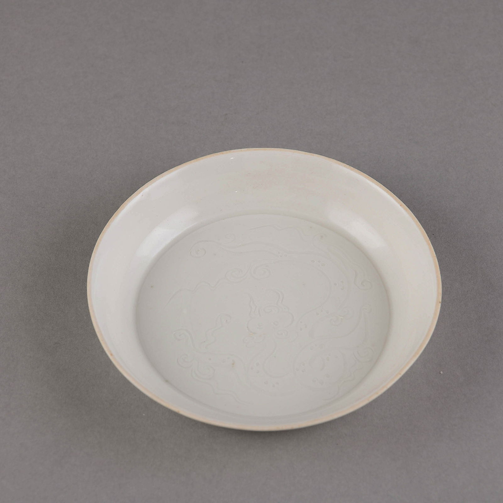 A CARVED WHITE 'DING' 'DRAGON' DISH, 'GUAN' MARK
