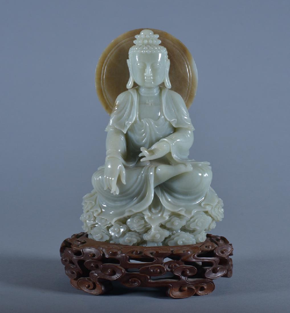 A CARVED WHITE JADE GUANYIN.
