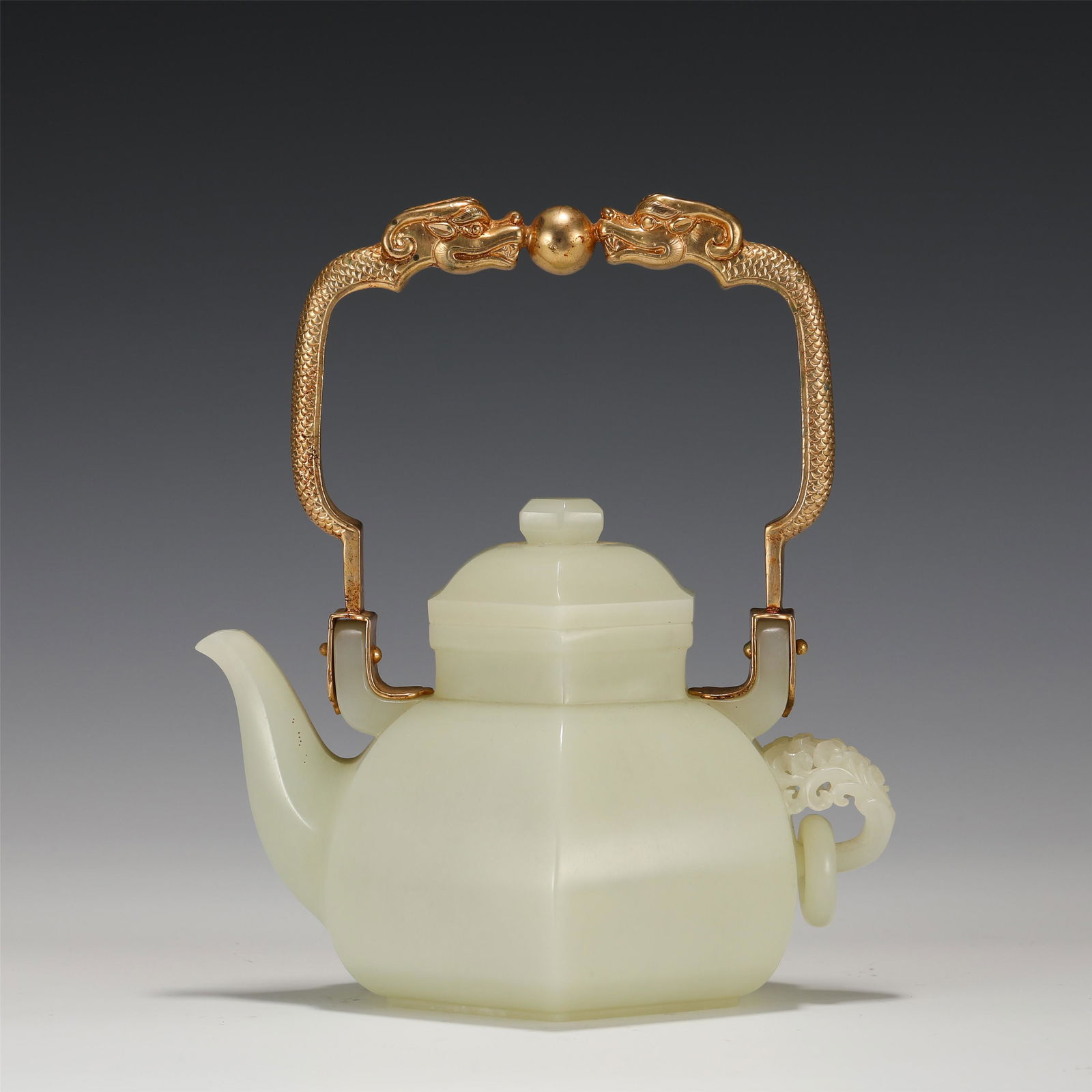 A CARVED WHITE JADE TEAPOT