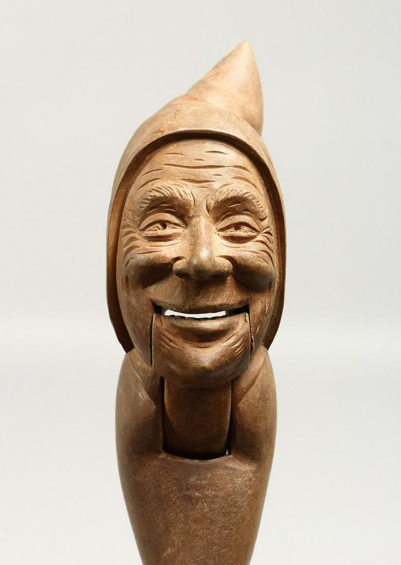 SoldAntique Carved Wood Nutcracker "Schnauzer Dog" - Black ForestAntique carved wood nutcracker, Germany, circa 1900, consisting of two interlocking parts. The upper part is carved in the shape of a Schnauzer dog's head, where the mouth serves as the opening and clSee Sold Price