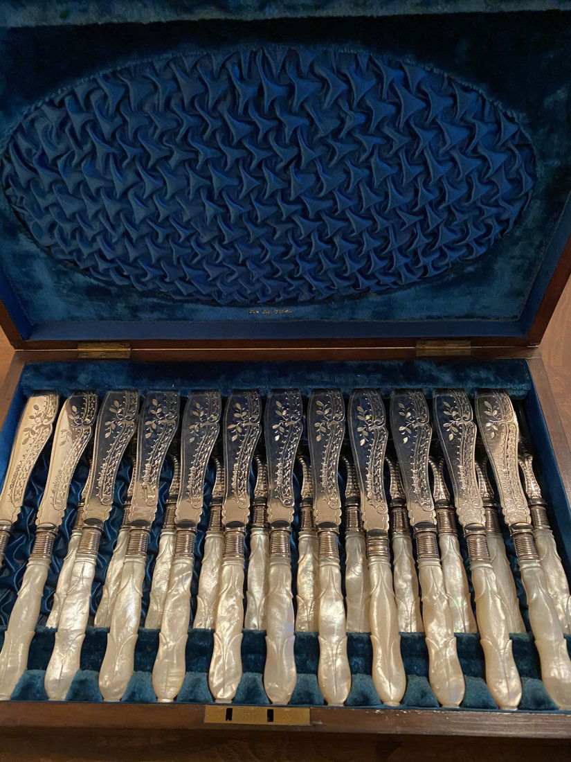 Sterling Silver Cutlery Set of 6 Pieces Estate Accessories Lot 93.1 gramsMar 18, 2026Vintage Early 20th Century Stag American Cased Hunting Knife Lot of 3 (CPD)Sheffield Silver Plate Fish Set in Mahogany Box474 Lots Away19th Century Harrison Bros and Howson Carving Set with CaseMar 28, 202670+ Pc Set of 1881 Rogers Oneida Ltd. Silverplate Flatware in Case3 days LeftEnglish Mother-of-Pearl Fish Service, 24 Pcs.Mar 12, 2026English Brass-Mounted, Sterling Silver & Cut Glass Vanity CaseMar 14, 2026English Brass-Mounted Burlwood & Sterling Silver Vanity CaseMar 14, 2026Antique 1855 French Rosewood Vanity Case by Peret with Cut Glass AccessoriesMar 18, 2026English Brass-Mounted Burlwood & Gilt Sterling Silver Vanity CaseMar 14, 2026English Brass-Mounted Rosewood & Sterling Silver Vanity CaseMar 14, 2026Group of Five Cased Flatware Sets, 19th/20th c., Largest Case- H.- 2 1/2 in., W.- 12 in., D.- 8 1/2Mar 26, 2026Mother-of-Pearl and Silver Plate Fish Servers, Pr.Mar 12, 2026Silver Plated Flatware Set in Wooden Case1 day LeftRegency Gentlemen's Necessaire Dressing Case3 days LeftEnglish Brass-Mounted Rosewood Vanity CaseMar 14, 2026