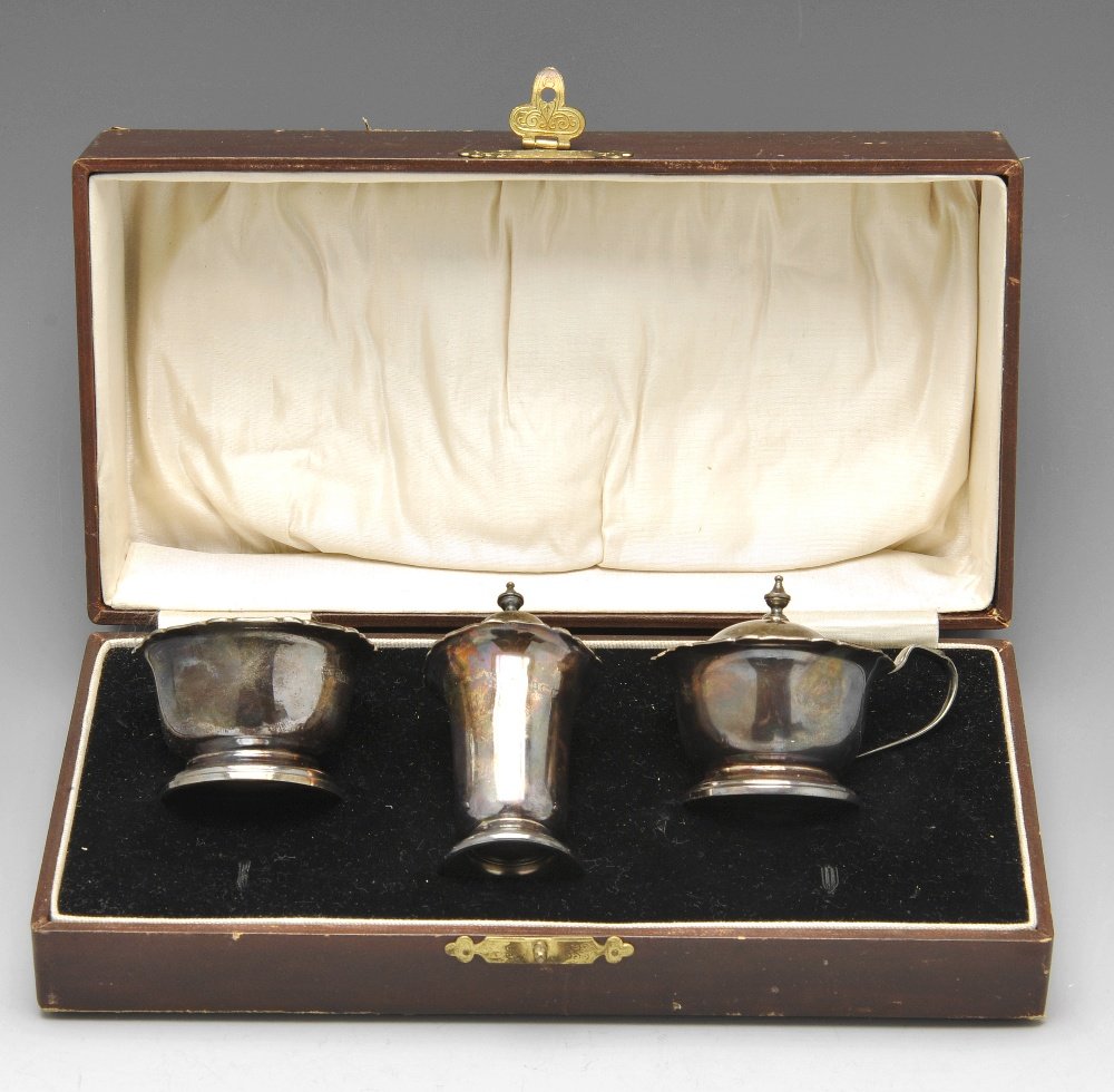 Collection of silver consisting of pepper and salt shakers, jugs, bell, bowl and statue of a boy,Feb 15, 2026Y A CASED SILVER BACHELOR'S TRAVELLING FOUR PIECE TEA AND COFFEE SETFeb 17, 20261920s Palais Royal Mexican Gold on 800 Silver 8 Piece Set3 days LeftThree Piece Sterling Silver GroupFeb 21, 2026WWII TYPE NAZI GERMAN TEASPOONS F OFFICERS CANTEENFeb 14, 2026AN ENGLISH SILVER & CRYSTAL TRAVELING TOILETRY SET, 1914Feb 15, 2026SILVER. Finest Quality English Silver Christening3 days LeftEnglish Sterling Silver Mustard Pot7 hrs LeftA CASED SILVER SIX PIECE TAPERING HEXAGONAL CRUET SETFeb 17, 2026A collection of silverA cased silver-gilt and enamel writing set William Hornby, London 1912 with French control marksSTERLING. Gorham Chantilly Sterling Flatware3 days LeftIrish silver hip flask & English bougie boxFeb 19, 2026A PAIR OF GEORGE III SILVER SAUCE TUREENS AND COVERSFeb 17, 2026A Group of Sterling Silver Table ArticlesFeb 15, 2026Gorham Chantilly Sterling Silver Flatware Set of 57 PiecesJul 15, 2025