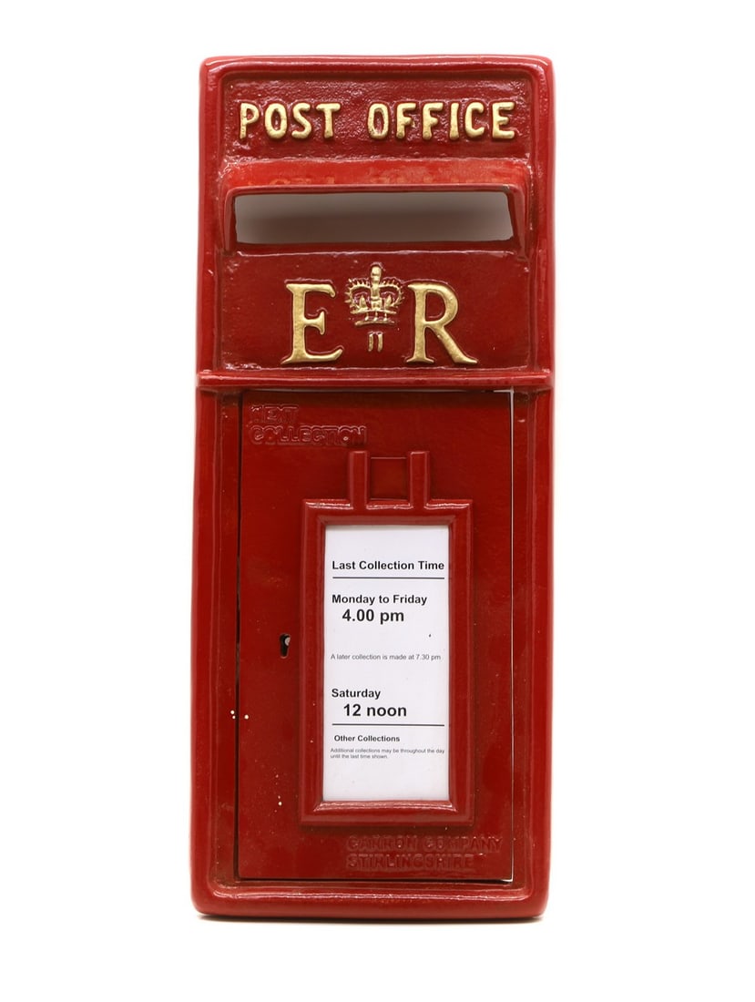 A cast iron ER II red post box front,