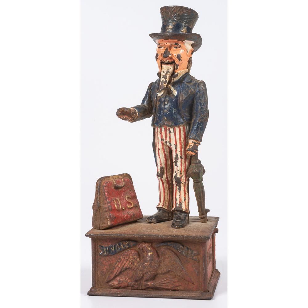 Uncle Sam's cast iron mechanical coin bank with US bag inscriptionLake Lanier Antiques LLC4.4(25)$20Mar 02, 2026