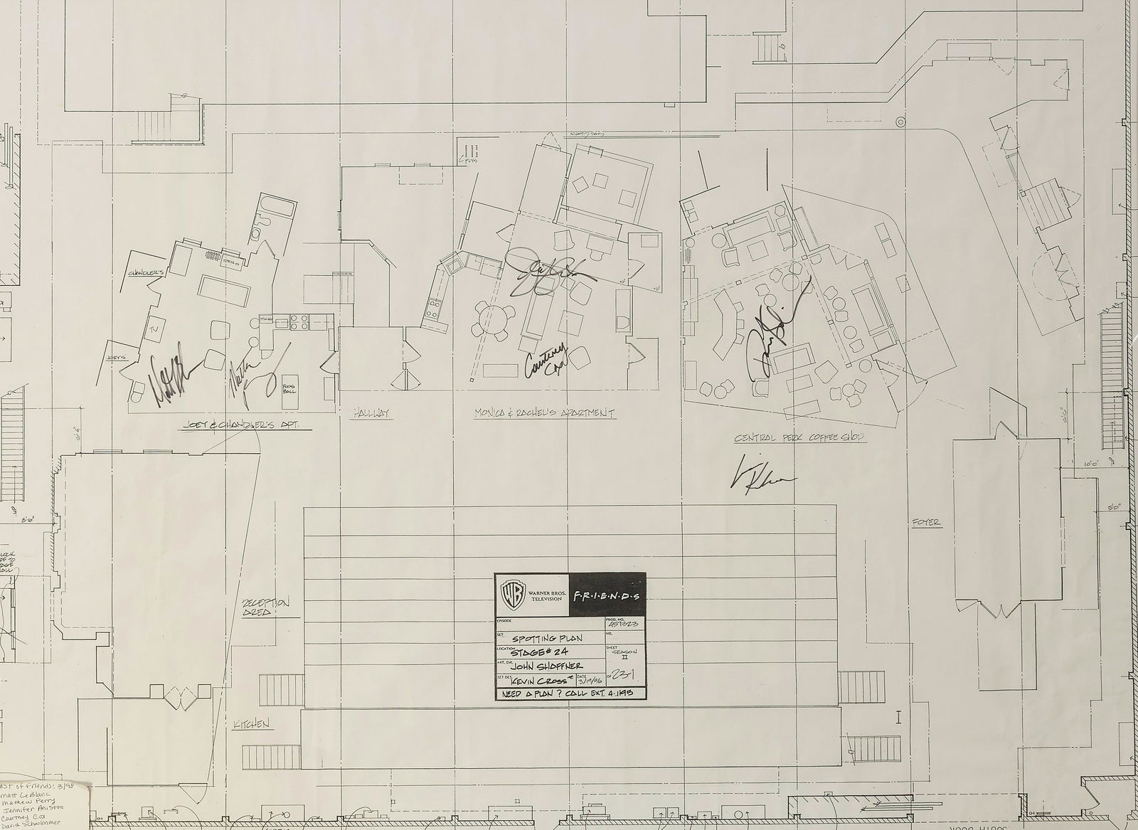 A CAST SIGNED SET BLUEPRINT FROM FRIENDS