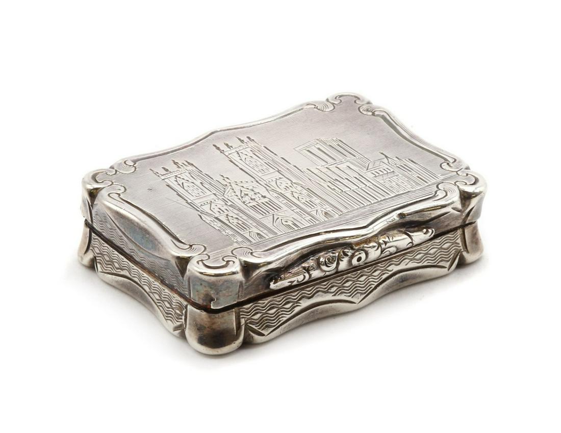 Gorham Mfg. Co. American Art Deco Silver Box No. 7137 days LeftNathaniel Mills Birmingham English Sterling Silver Vinaigrette Box 1836Feb 28, 2026Antique Russian Silver Cigarette CaseMar 03, 2026German 750 Silver Vinaigrette Box Kecker Before 18863 days LeftRussian Silver Cigarette CaseMar 03, 2026SAMUEL PEMBERTON GEORGE III STERLING VINAIGRETTE2 days LeftMatthew Lindwood Georgian Sterling Silver Vinaigrette 1809 Gold Wash Interior6 days LeftRussian Silver Cigarette CaseMar 03, 2026SILVERPLATED DOMED GAME COVERMar 06, 2026John Thropp Birmingham English Gilt Sterling Silver Vinaigrette Box 1827Feb 28, 2026Thomas Phipps and Edward Robinson London Engraved Vinaigrette Women Box 1802Mar 15, 2026William IV sterling silver card case16 hrs LeftA WMF German Art Nouveau jewelry casket, circa 1905Mar 15, 2026A George III sterling silver shaped rectangular salverMar 03, 2026A YEMENI JEWISH SILVER FILIGREE BESAMIM SPICE BOXMar 06, 2026Mid 18th Century Antique George III Silver Tea Caddy London 1763 John Parker & Edward Wakelin