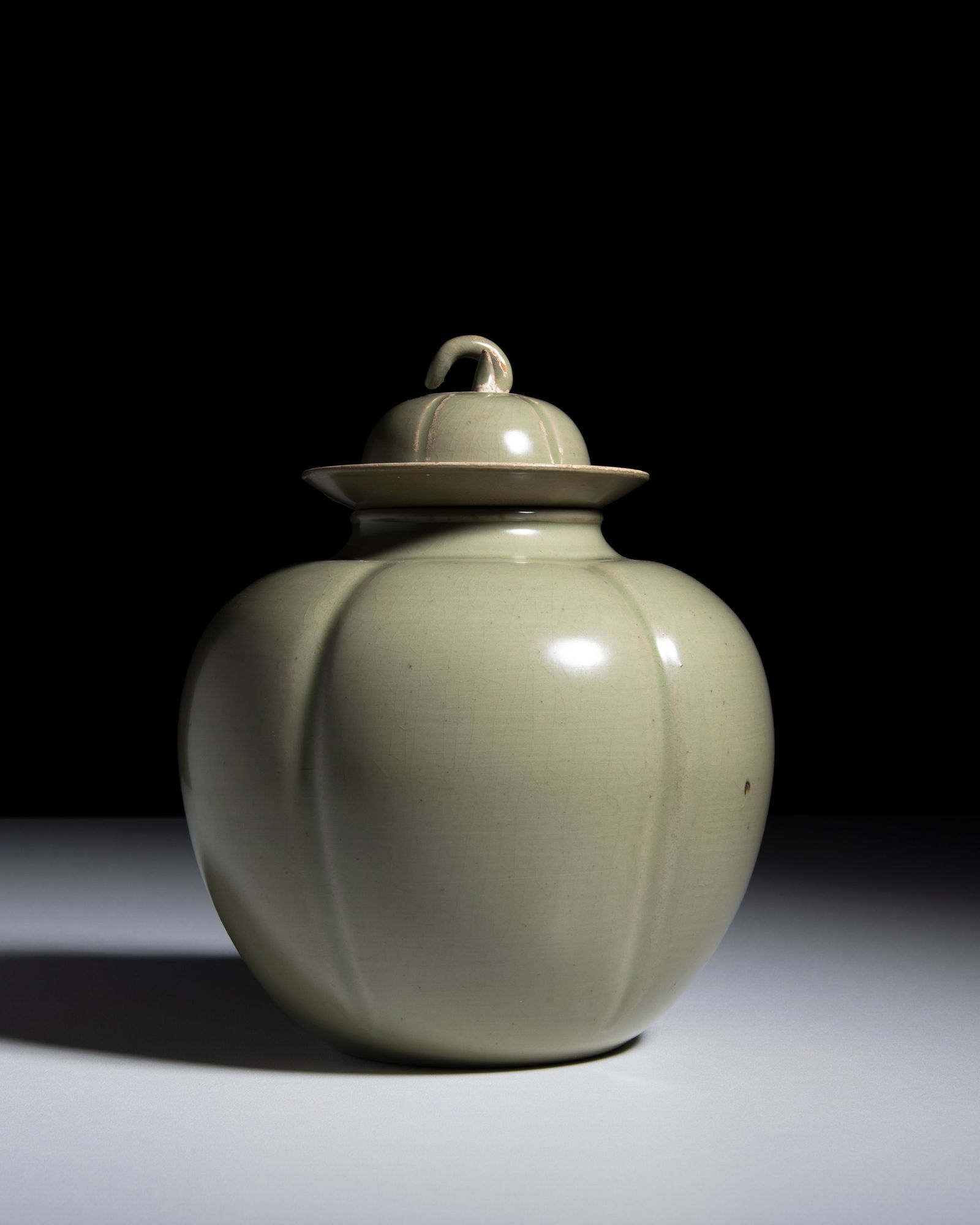 A CELADON-GLAZED MELON-SHAPED JAR AND COVER 南宋风格 青釉